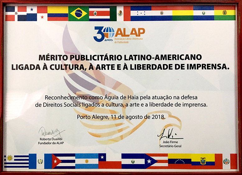Publicitário – filiado a ALAP-Associação Latino Americana de Publicidade.