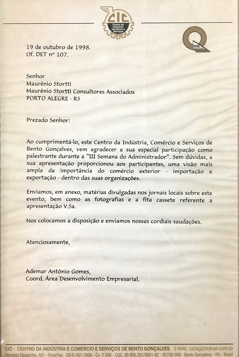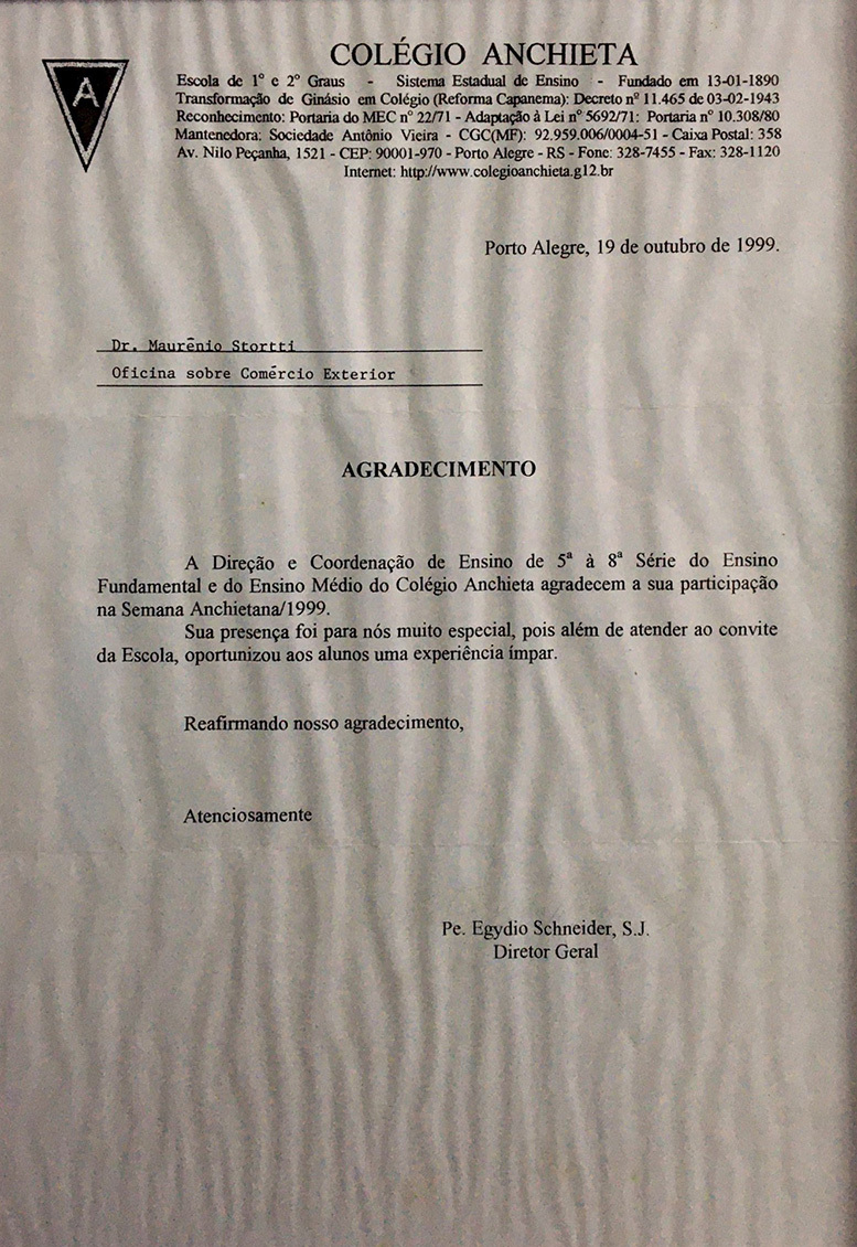 Criador do programa de Formação Prática em Comércio Exterior e Legislação internacional com a FIERGS-RS com mais de 4500 alunos treinados.
